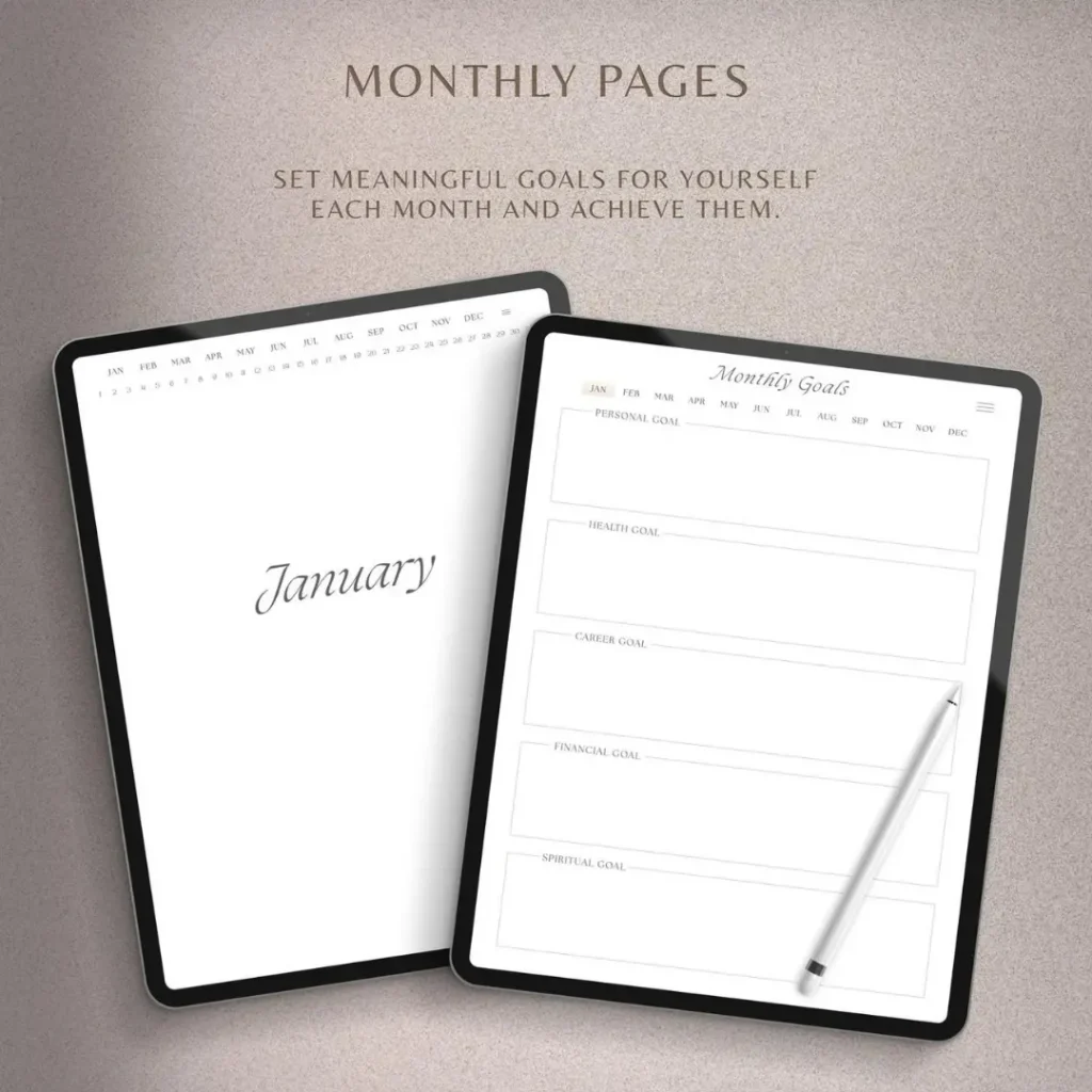 Please note that the planner has a 4:3 aspect ratio, like all iPads. If your tablet has a different aspect ratio, the planner may have different proportions and may not fill the entire screen.