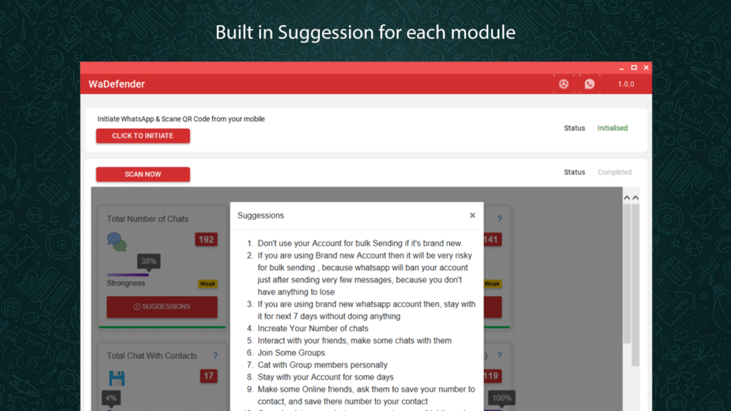 WaDefender is a Windows-based software designed to check the strength of WhatsApp accounts when sending messages in bulk.